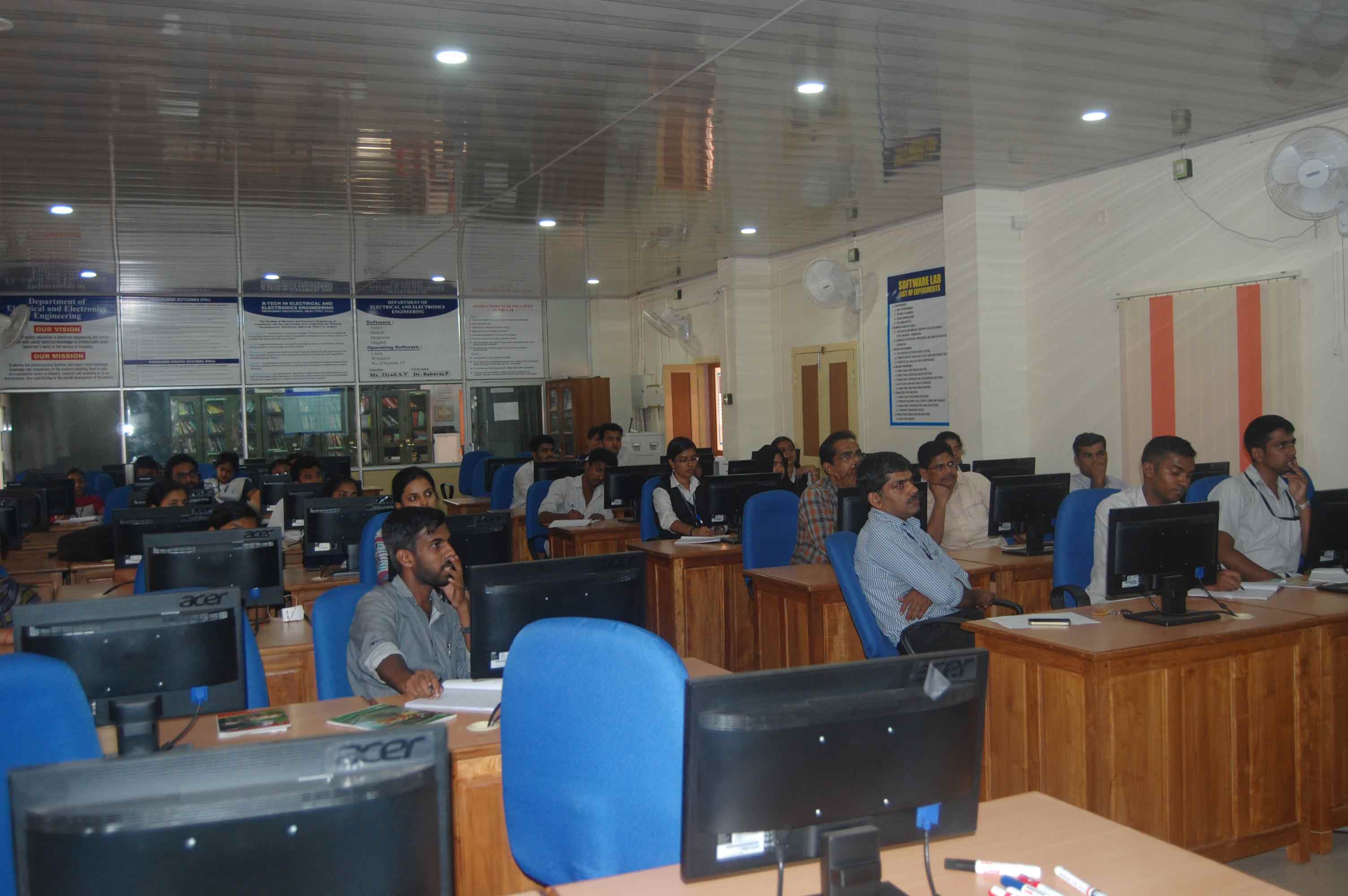 This also serves as the software lab for the final year students. Software like MATLAB, Multisim and SKM power tools are installed in the systems. Programming with ‘C’, MATLAB, SIMULINK, PSPICE etc are included in the course work. The students get ample opportunity to use these software.for regular as well as project works.