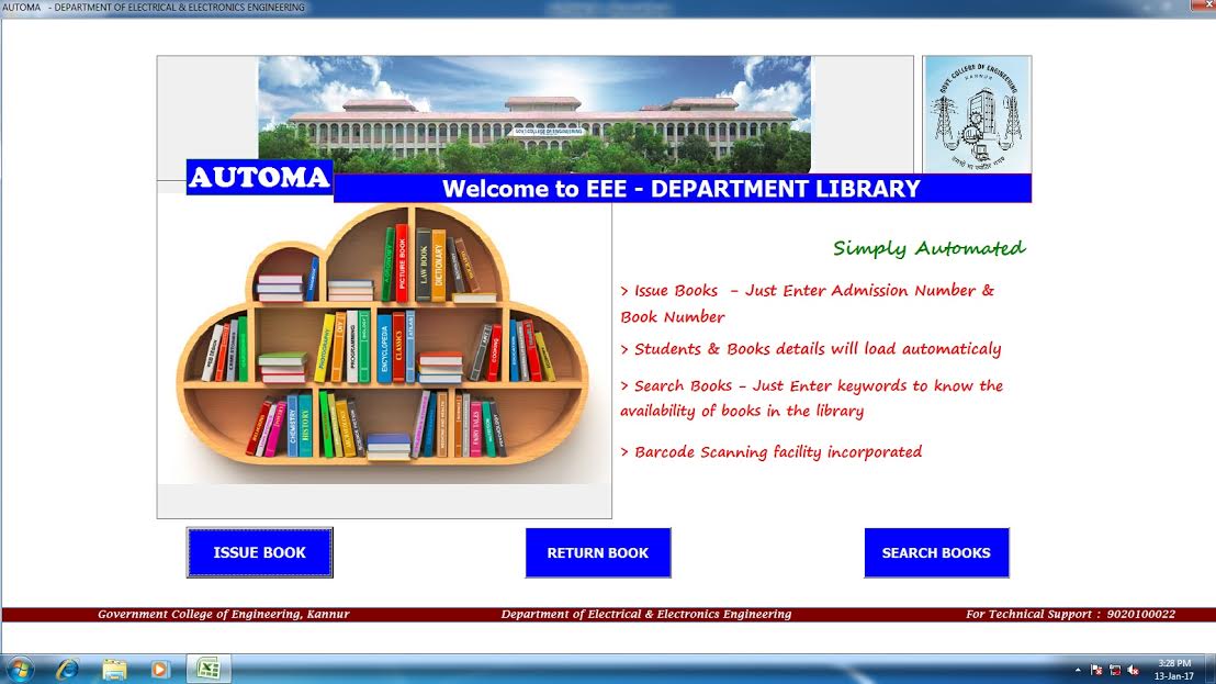 In addition to the central Library, the department has a separate library which issues books exclusively to the EEE students. The library has a collection of about 1000 books. Students passing out from the college also contribute books to the department library for the benefit of the juniors , thus increasing the number of books every year. Being very near to the classrooms, the library is utilized very well by the students.