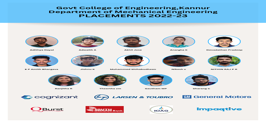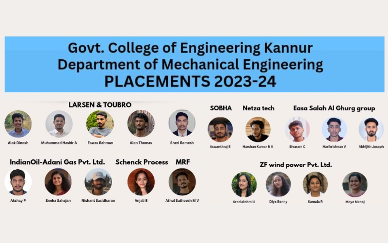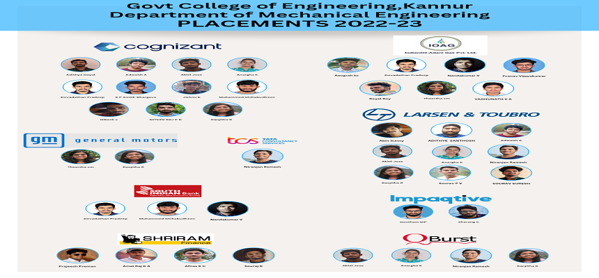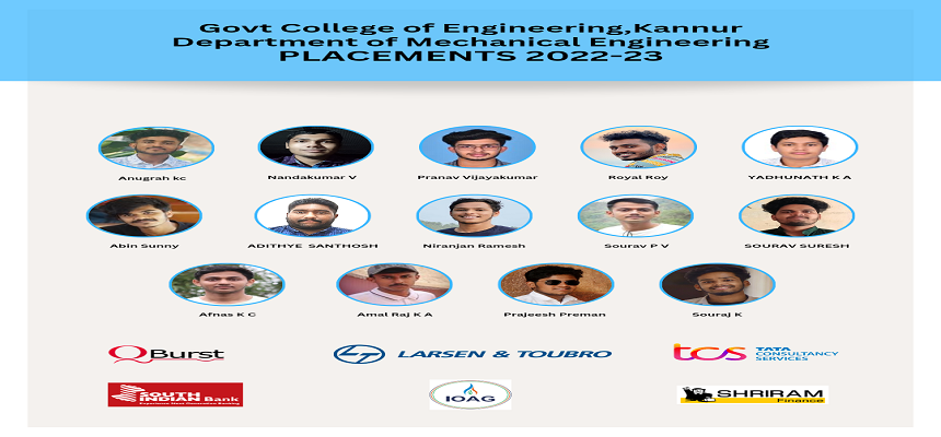 The Department of Mechanical Engineering has been functioning in the college since its inception in 1986. Started with 40 students for UG programme, the intake was increased to 60 in 1999. The department also offers a PG programme in Advanced Manufacturing and Mechanical Systems Design with an intake of 18 students. The total students’ strength of the department is 301. The sanctioned post for the faculty members is 20 and that for the support staff is 31. Students’ performance is very good that they secure good grades, get placed in reputed companies through campus recruitments, and also get admissions for higher studies in well reputed institutes in the country and abroad.